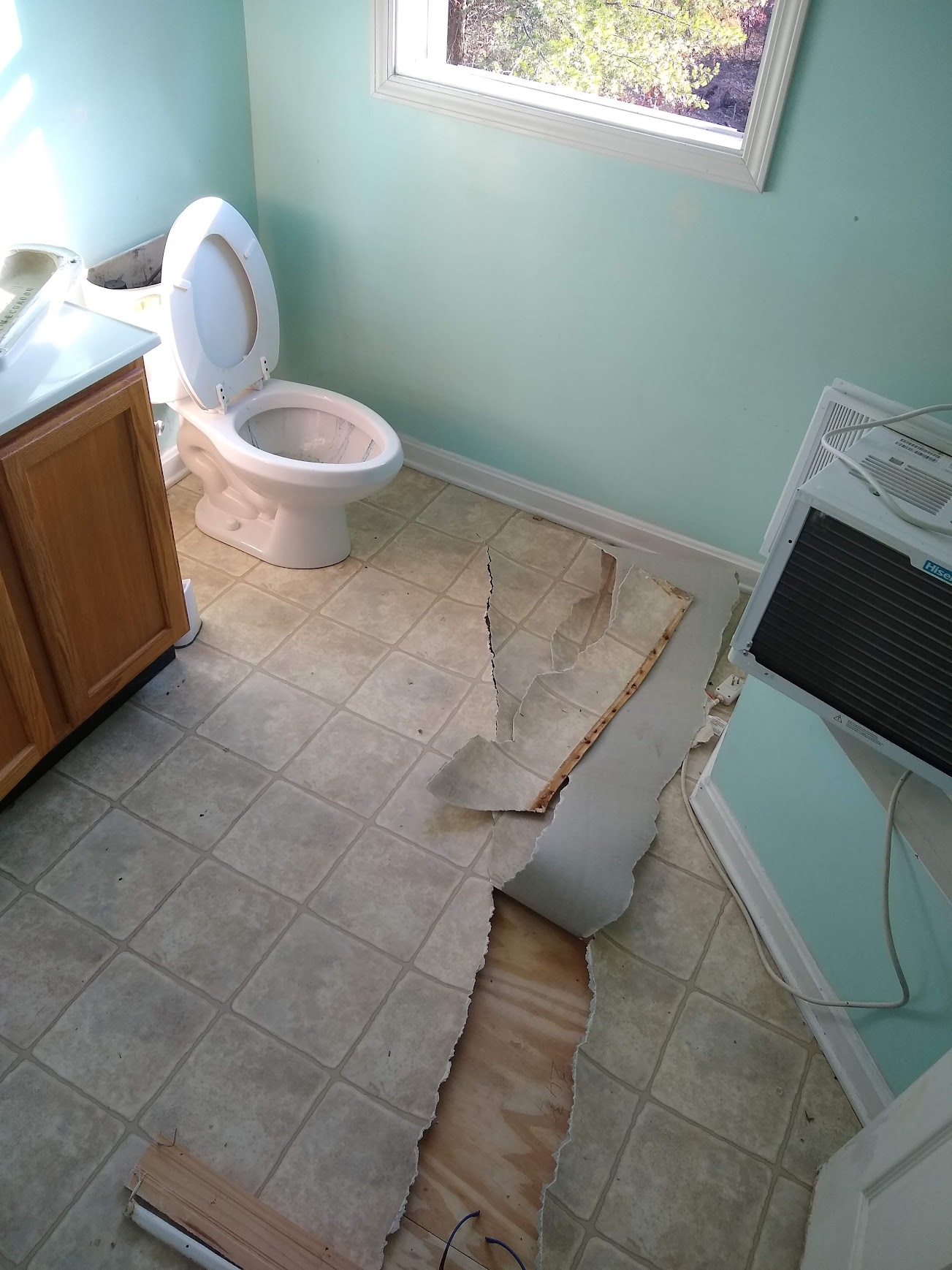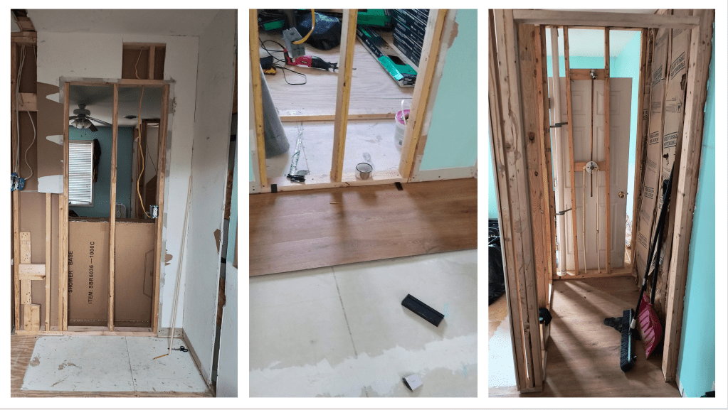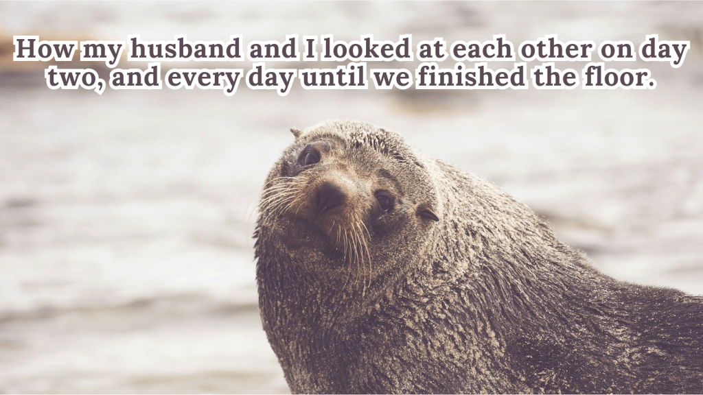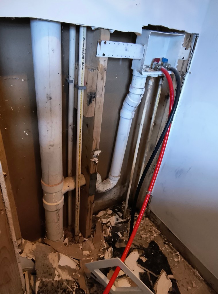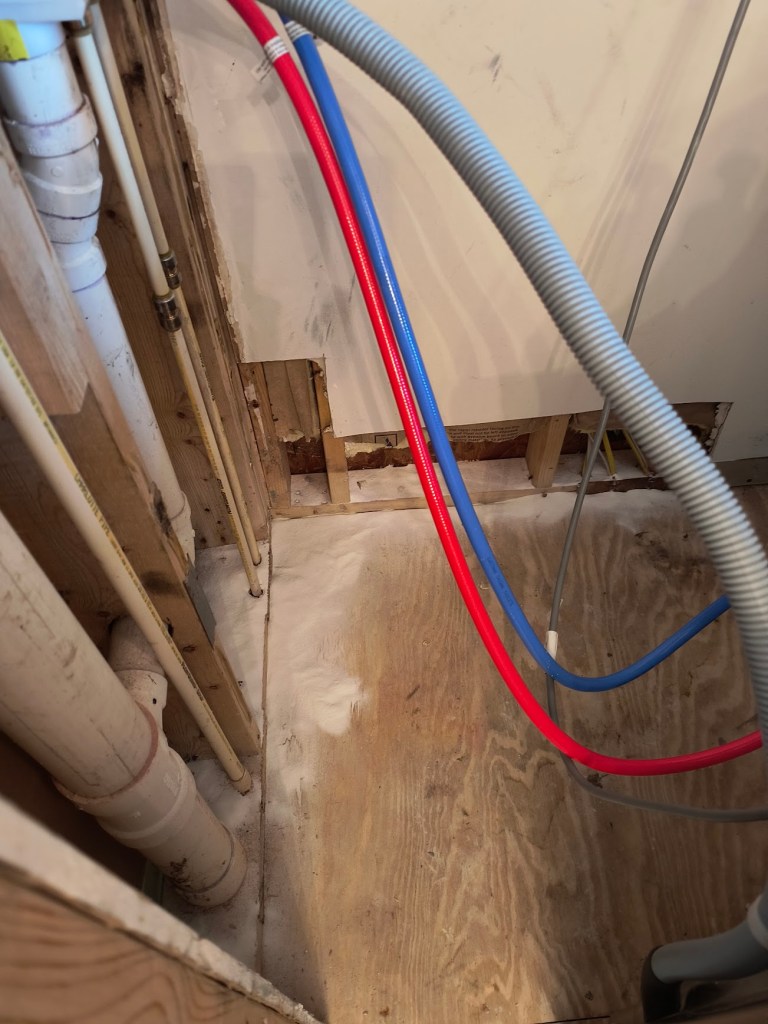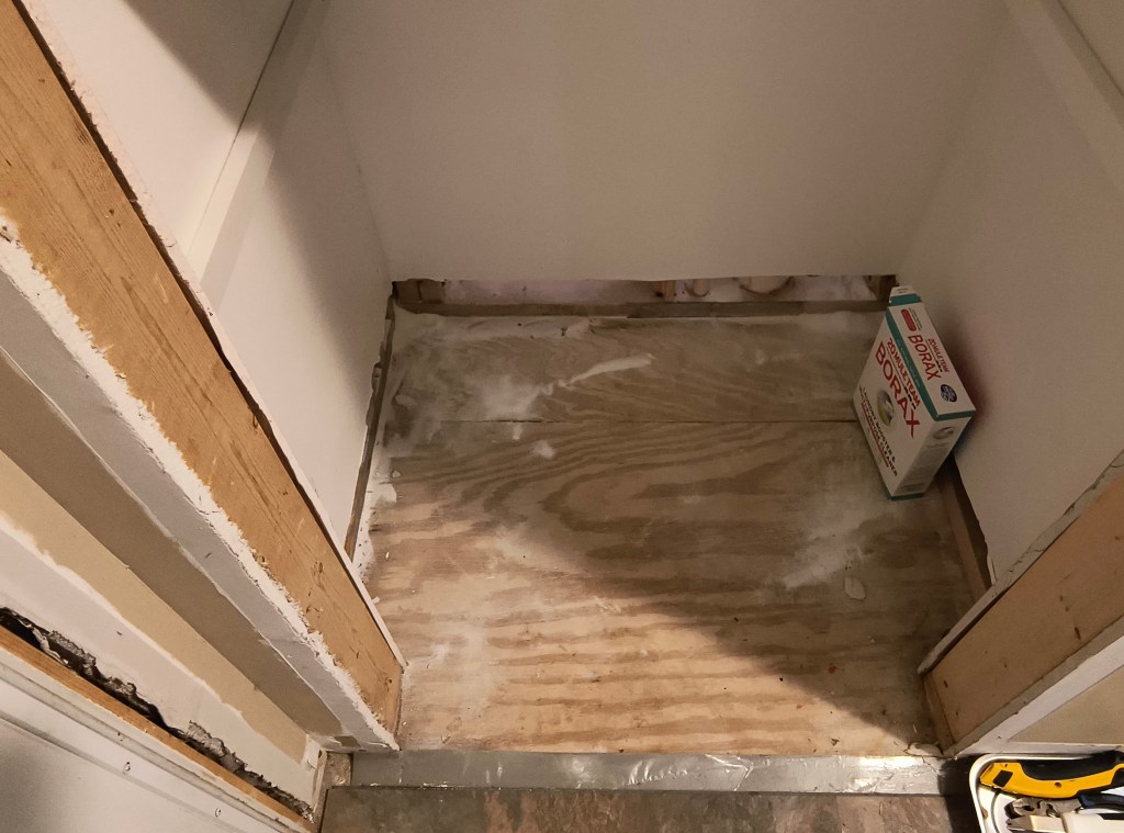 Once we finish the walls, I can finally finish installing the lovely LVP tile that we selected. After installing the baseboards, we can move the washer back to its rightful place. This means there’s only one more room to install flooring in: the master bathroom.