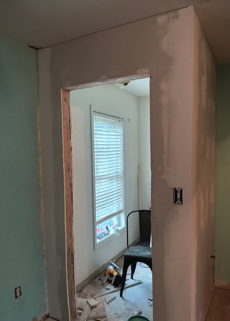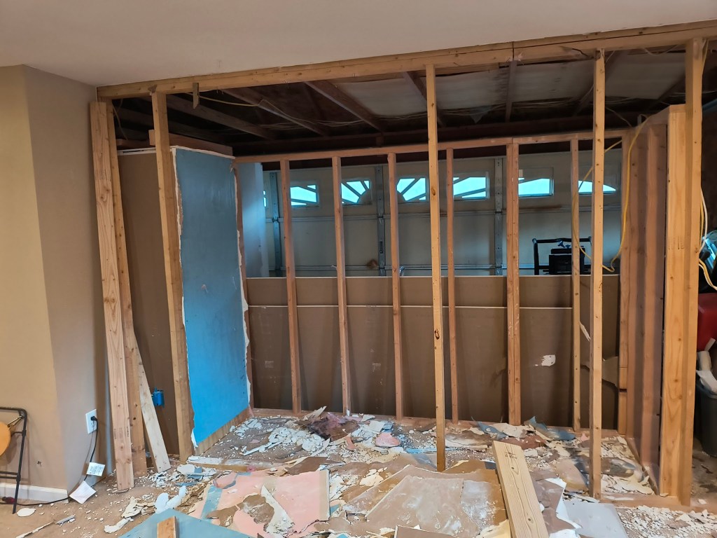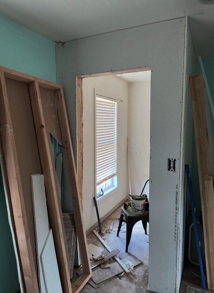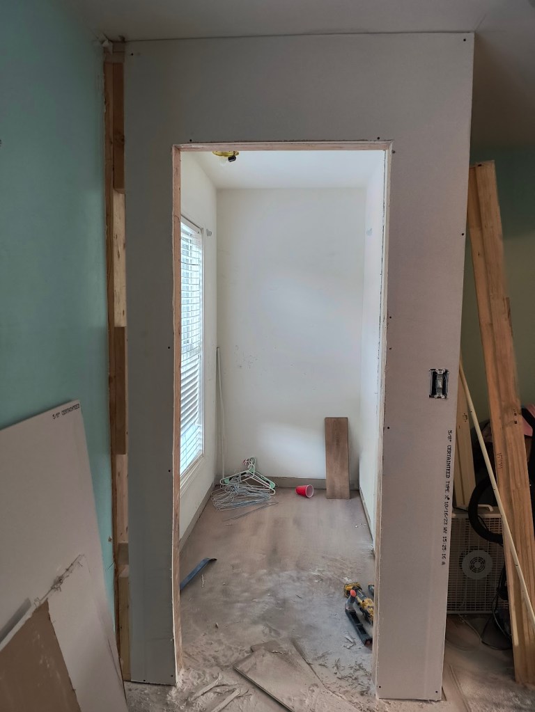 Additionally, after my closet is finished I will finally be able to clean out the pink room in the garage. I can’t wait to finish tearing it down and open up the garage the rest of the way across. We’ve also be repurposing the drywall we’ve been removing from there to patch up different areas around the house.