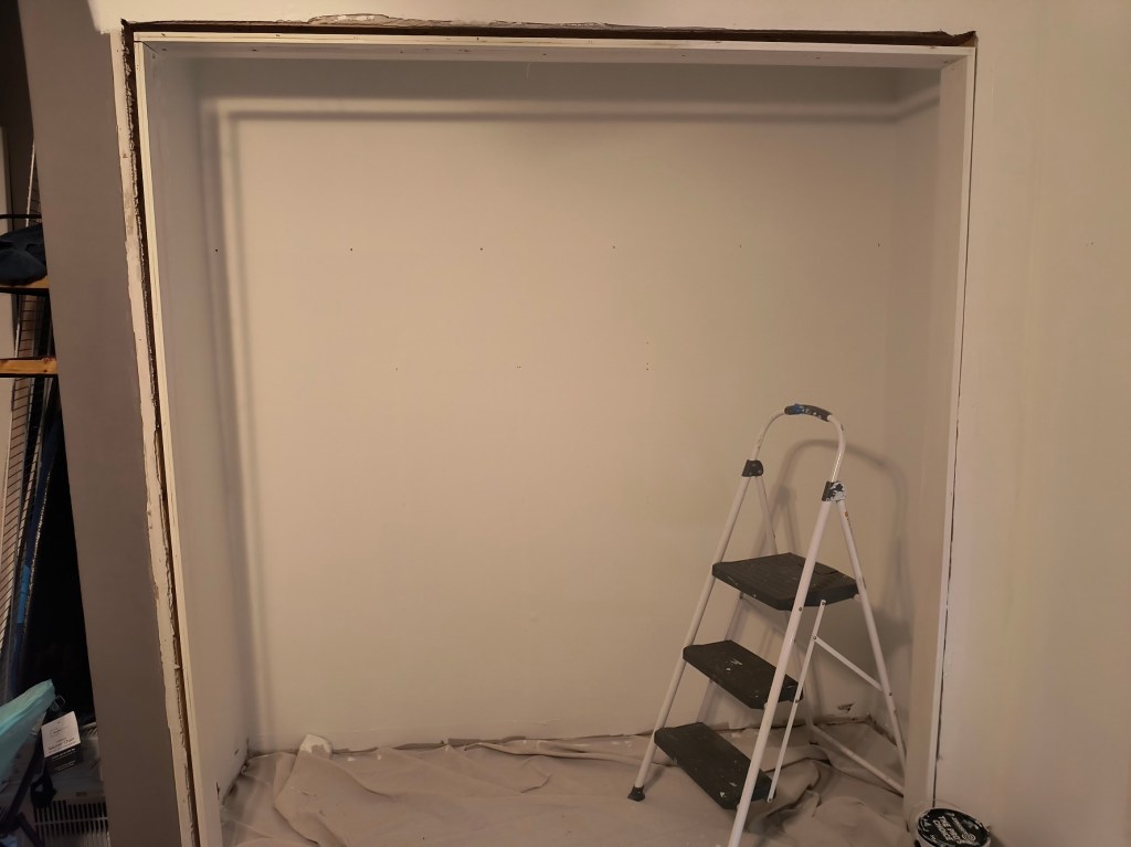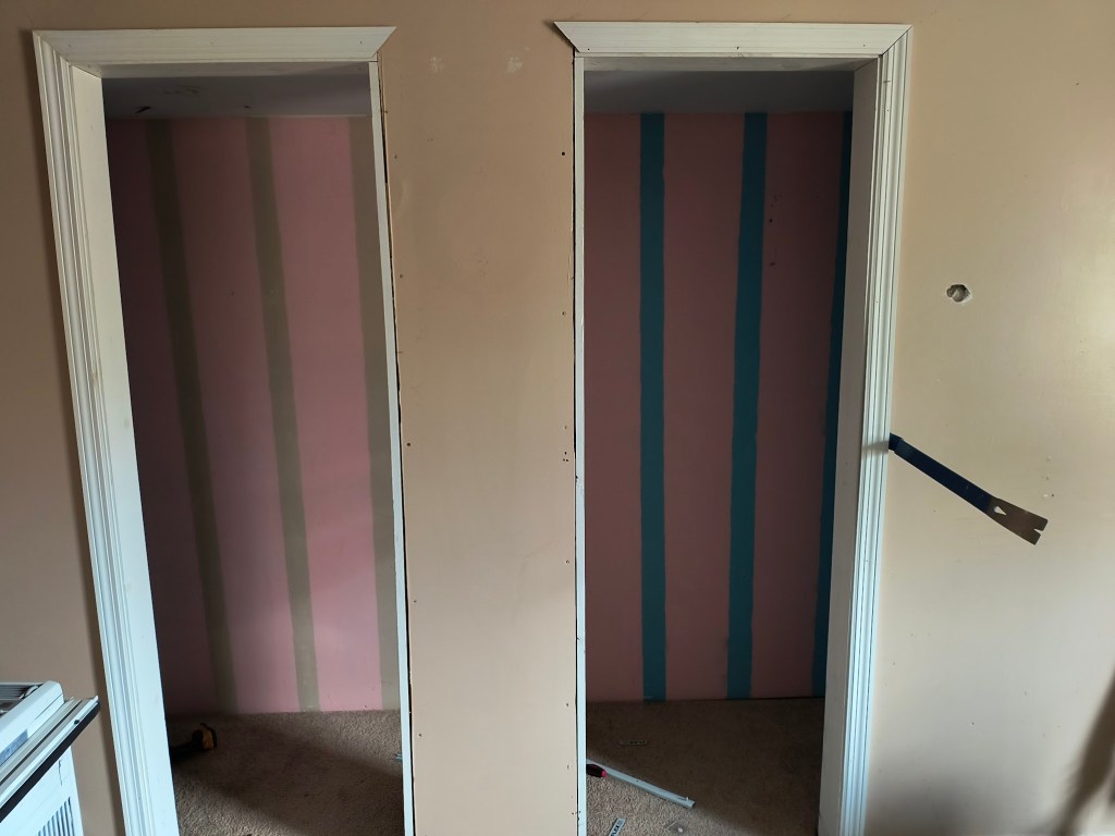 I cannot even begin to express how happy I will be to finally have this closet remodel finished and painted. Going without a closet has made me feel like I’m glamping/living out of a bag, in a way. Everything feels disorganized and messy when one doesn’t have proper storage, ya know?