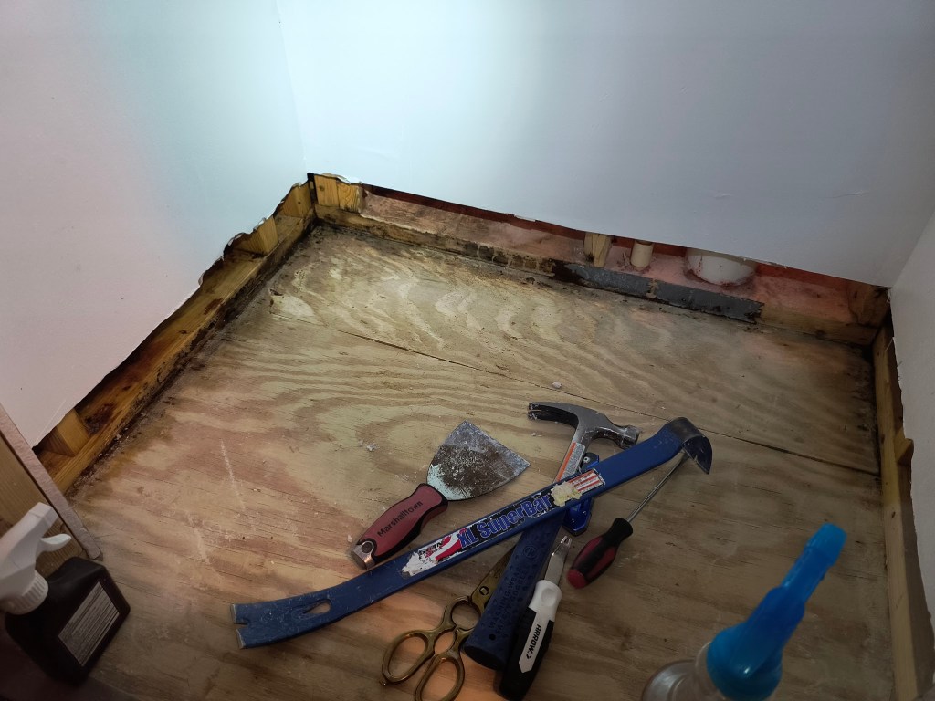 Unfortunately, we haven’t been able to touch the master bath remodel for quite a while. Between cycling through the different icks of cold and flu season and other projects taking priority, it’s been a couple of months since we’ve touched it.